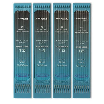De weerhaakloze Wide Gape Carp kant en klare onderlijnen zijn de ideale onderlijnen voor het vissen op karper. De haak is voorzien van een extra wijde haakbocht wat het haken van vis ten goede komt. Door deze haakvorm zit het haakaas perfect recht op de haak, door de korte haaksteel kan de haak gemakkelijk worden verborgen in het haakaas. De extra ruime haakbocht maakt deze haak ideaal voor alle soorten groot en zacht haakaas.
